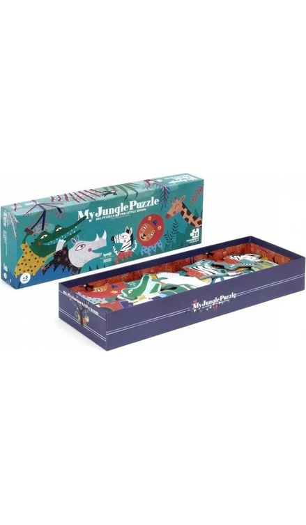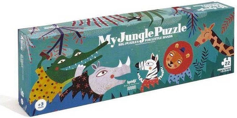 Puzzle Londji My jungle ένα εξαιρετικής ποιότητας παζλ, 22 κομματιών, από ανακυκλωμένο χαρτί και χαρτόνι. Το παζλ αποτελείται από 4 μικρά των 2-3-4 και 5 τμχ. τα οποία ενσωματώνονται σταδιακά στην βασική εικόνα, που αποτελείται από άλλα 8 μεγαλύτερα